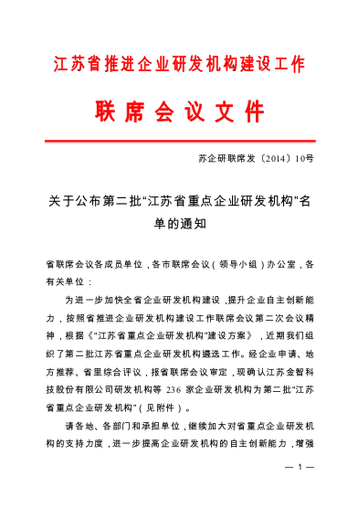 2014年在江苏省推进企业研发机构建设工作联席会议办公室公布的“第二批江苏省重点企业研发机构名单”中,吴中医药凭借出色的药物研发能力榜上有名。