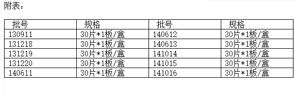 本着对患者用药安全有效高度负责的态度,企业对2013年5月以后生产的银杏叶片进行梳理,至2014年10月16日(2014年10月16日后至今未生产银杏叶片)共计生产银杏叶片10批(见附表)。为防止产生质量风险,公司决定对各销售终端、各批号进行逐一核实,对市场还有可能存在有效期内的全部银杏叶片,依据《药品召回管理办法》的要求,实施主动召回,进行风险评估,并将排查情况在公司网站及时更新。