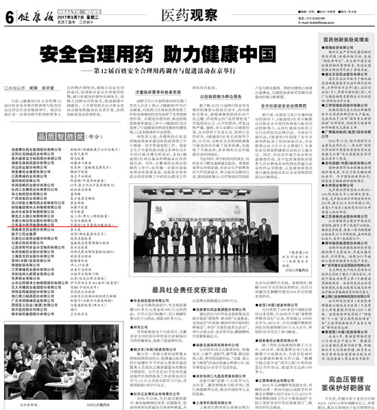 日前,《健康报》社主办的第十二届百姓安全合理用药调查活动中,江苏吴中医药集团的"芙露饮"匹多莫德口服溶液获得“品质致胜奖”,最受临床信赖品牌。该活动旨在进一步规范医疗机构和医务人员药物合理使用,提高公众安全用药意识。