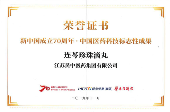 吴中医药“连芩珍珠滴丸”获评“中国医药科技标志性成果”