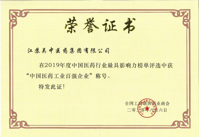 吴中医药入选2019年度中国医药工业百强