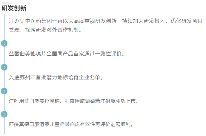 一方面,将科技创新与转化应用相结合,整体提升与重点突破相结合,集聚创新人才团队,探索建立自主创新、协同创新、开放创新的新机制,进一步提升吴中医药的研发技术能力和竞争力,为企业成长提供强大的科学技术支撑。