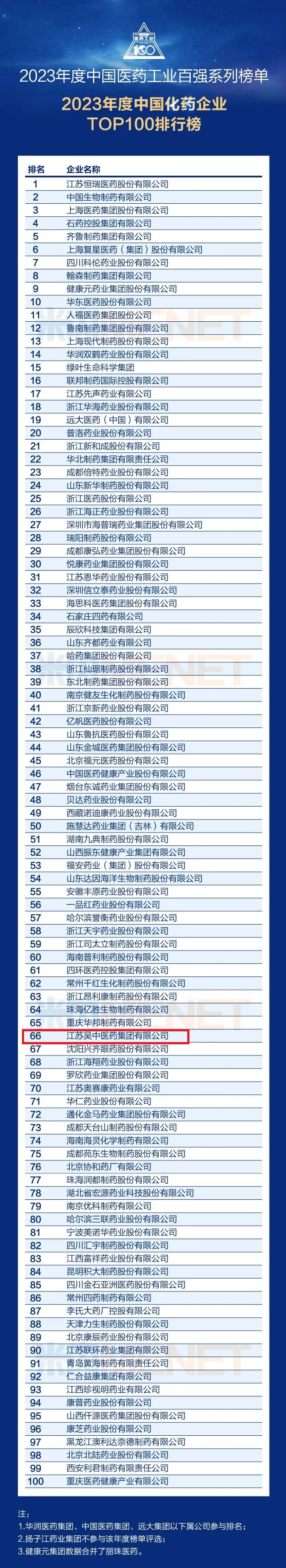 荣誉 | 吴中医药成功入选“2023年度中国医药工业百强系列榜单”