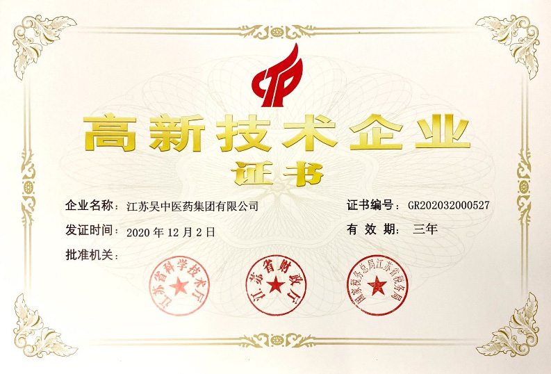 根据苏州市高新技术企业申报管理工作协调小组《转发江苏省2020年度第一批高新技术企业的通知》(苏科高〔2021〕6号),永利总站获评江苏省高新技术企业,吴中医药自2008年来持续获评该项荣誉。